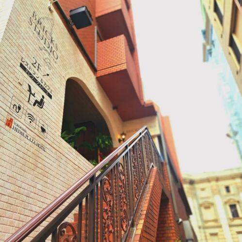 横浜平和プラザホテルの2階に位置するBRICKS STUDIO。外階段からもご入店可能ですが、ホテル内エレベータからお上がり頂く事もできます。エレベーターを降りると、赤レンガで囲まれた入口です♪